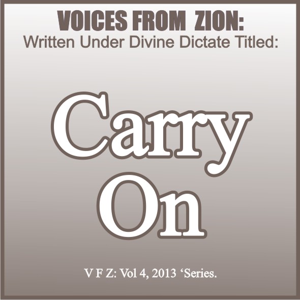 May be you have thought about quitting God and His work. May be you cannot see any good thing forthcoming in your God given assignment. You may suddenly discover you are alone; others have left you. This month Voices From Zion is written for you titled CARRY ON. Our text is Isaiah 40:28-29 Hast thou not known? hast thou not heard, that the everlasting God, the LORD, the Creator of the ends of the earth, fainteth not, neither is weary? there is no searching of his understanding. *He giveth power to the faint; and to them that have no might he increaseth strength.
