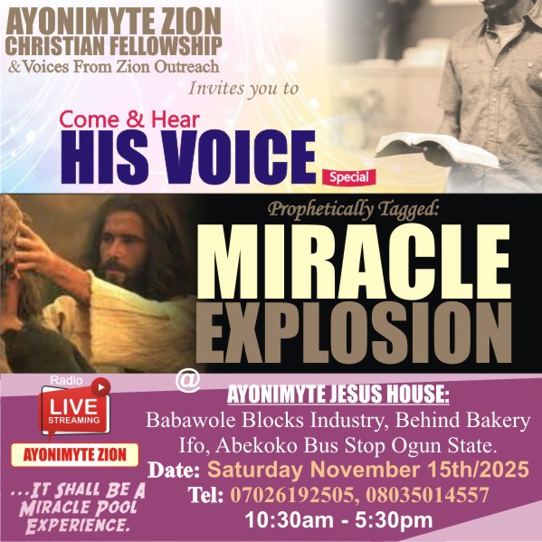 4. Lord Jesus let every Voices From Zion that will be used in Come Come And Hear His Voice Special; Miracle Explosion 2025 be a Miracle Pool for every attentive listeners and all participants.